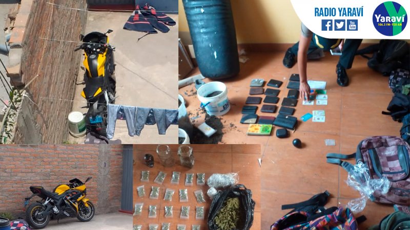 En el domicilio se recuperó la moto lineal y además se halló gran cantidad de droga lista para ser distribuida, además de varios celulares reportados como sustraídos, también había gran cantidad de billeteras y mochilas que harían sido robadas.