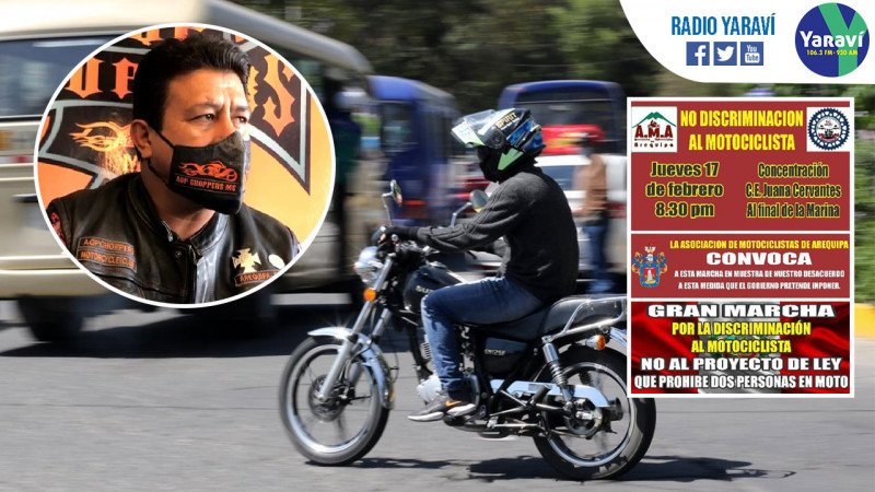 El representante de la Asociacion de Motociclistas en Arequipa, Carlos Cuentas, anunció una protesta contra el proyecto de ley aprobado por el Gobierno, que plantea la prohibición de dos pasajeros para combatir la delincuencia.