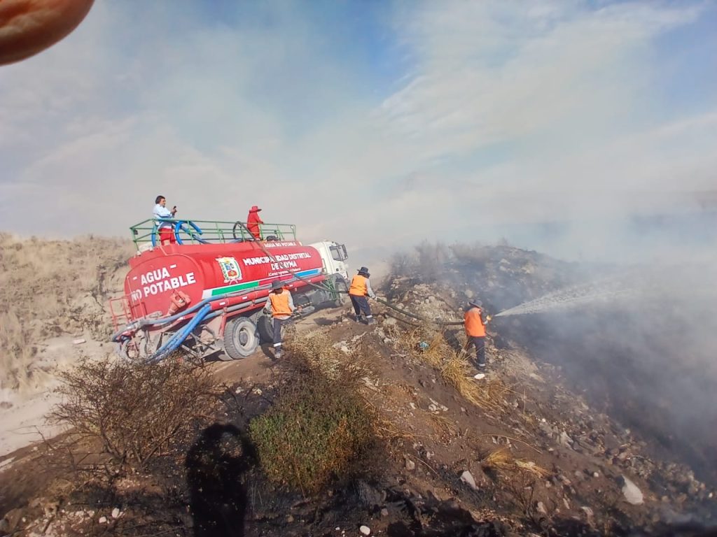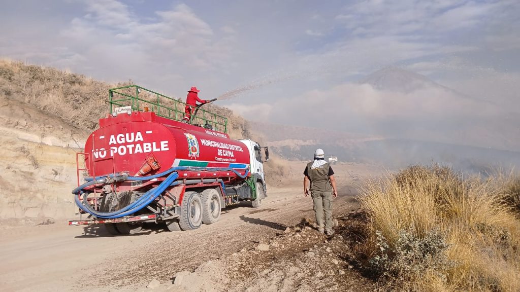 Esta tarde se reportó un incendio forestal que se produjo en la parte alta de Cayma, zona de amortiguamiento de la Reserva de Salinas y Aguada Blanca, el mismo que fue controlado por el personal de la Oficina de Gestión de Riesgo y Desastres, Serenazgo, Servicios Generales y Áreas Verdes de la Municipalidad de Cayma.