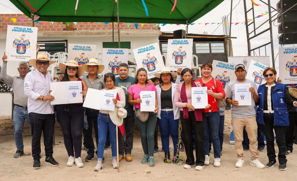 La Municipalidad Provincial de Arequipa entregó 60 títulos de propiedad a los integrantes de la Asociación de Vivienda Las Esmeraldas – El Triunfo, en el distrito de La Joya. Los beneficiarios completaron su proceso de formalización tras gestionar primero el saneamiento físico legal en el 2024.