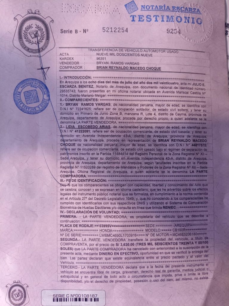 Bryan Ramos, un joven motociclista encontró su moto lineal luego de cuatro meses de búsqueda desde que fue robada en el distrito de Cayma, grata fue su sorpresa al hallarla en una casa de empeño ubicado en la Av. Independencia del Cercado de Arequipa.