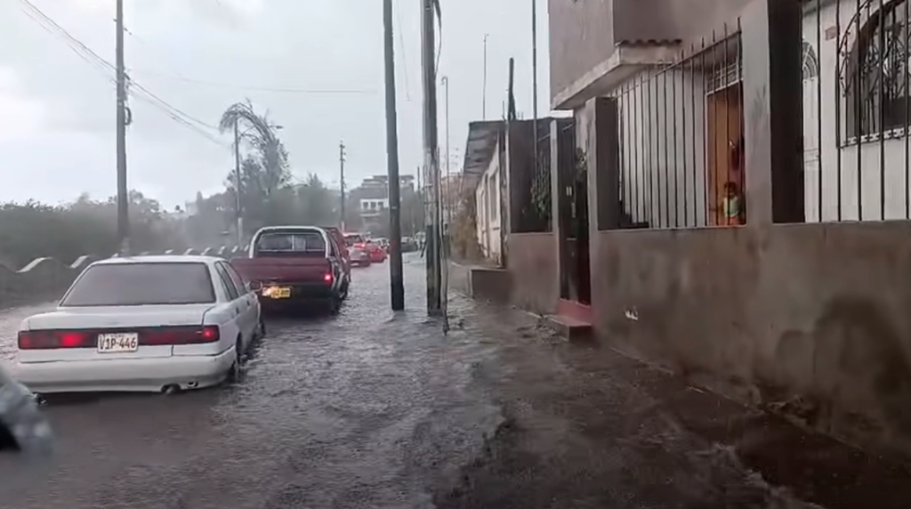 En Sabandía, las precipitaciones convirtieron varias vías con pendiente y deficiente drenaje pluvial en “ríos”, dificultando el tránsito vehicular y peatonal, y exponiendo a conductores y transeúntes a posibles accidentes.