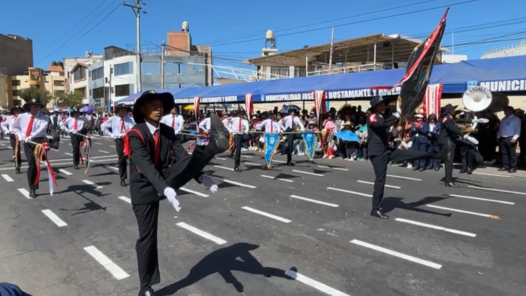 Con paso marcial, escolares de instituciones educativas de José Luis Bustamante y Rivero demostraron su amor a la patria en el Desfile Escolar por Fiestas Patrias, que se realizó este martes en Av. Paseo de la Cultura.