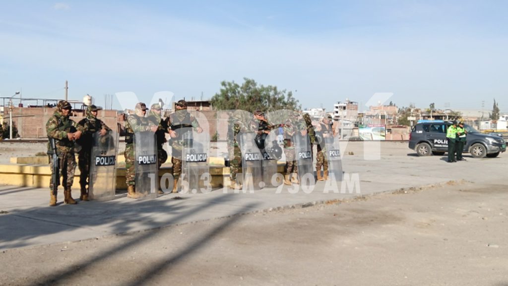 Los agentes se instalaron en puntos críticos del cono norte, sur y centro de la ciudad desde las 4:00 a.m. como el puente Añashuayco, Ciudad Municipal, Baden, Plaza de Armas, y resguardando las sedes de instituciones públicas.